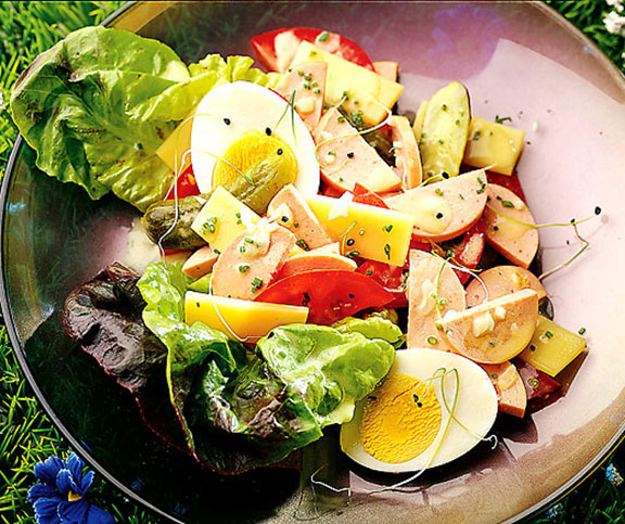 Eier, Schinken, Salami, Spargel, Thon Lachs